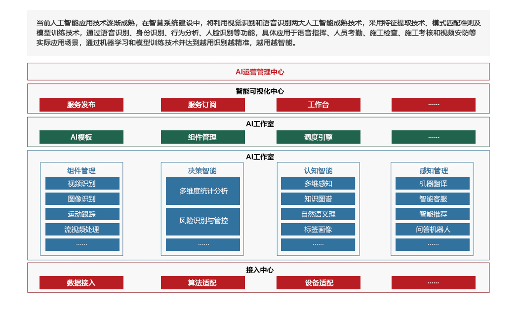 智慧軍營物聯網系統,通過云計算、大數據和人工智能實現對軟硬件結合管理,使傳統軟件快速轉化為智能硬件,對營區內進行智能提升,實現一站式托管—高效性、低成本。提升營區智能化,提高營區物聯網落地能力,數字整合為營區智能化提供決策。具有高響應、高擴展性、提供輔助決策分析、硬件統一管理、多協議適配的特色。